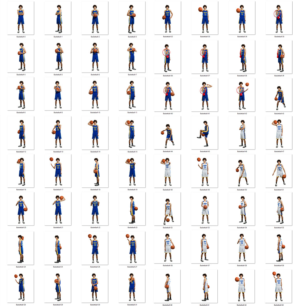 In the alternate poses folder we have included several poses where the player is holding a basketball rim as in the examples below. If that is a prop that you have and want to use you can easily swap them in using the Canva or Photoshop templates!