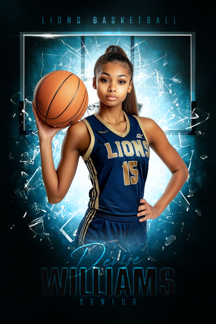 Every part of the basketball hoop is on it's own layer so it can be toggled on or off including the cracks, the shattered glass effect and even the hoop can be turned off to emphasize the "broken backboard" effect: