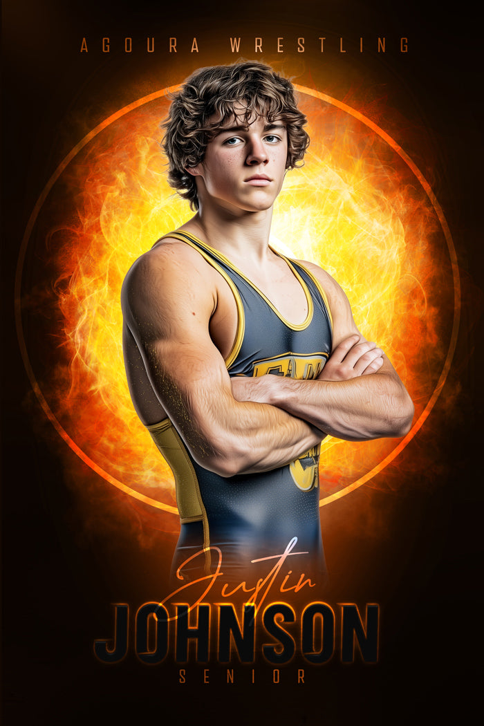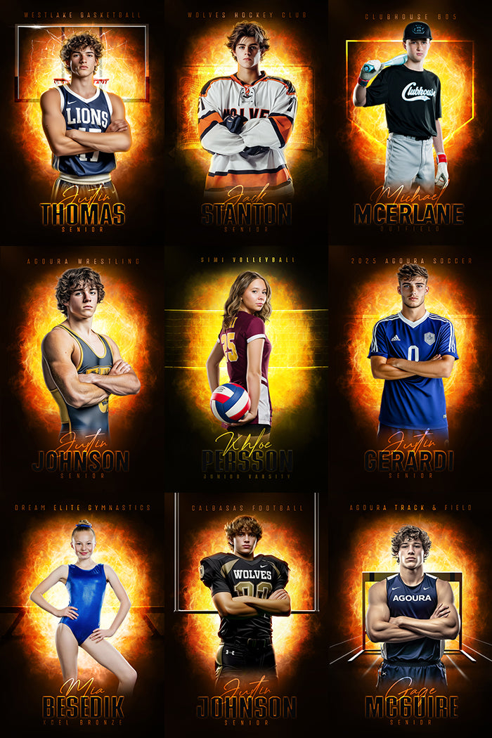 All Fire & Ice templates come with with the optional shattered ice/glass effect and the optional "fire" layer folder that adds fire and flames to your athlete and team images with one simple click! Whether you're creating a dramatic individual portrait or a full team layout this template gives you TONS of options for both and of course is fully editable and customizable to match any team colors.
