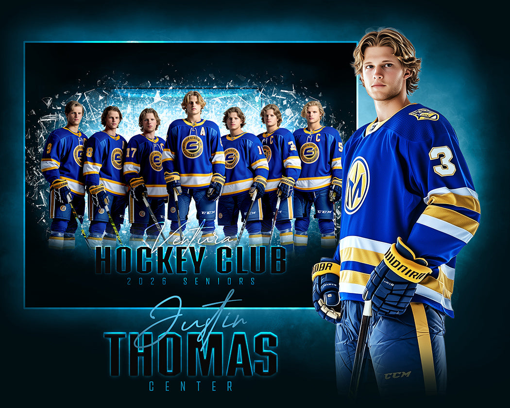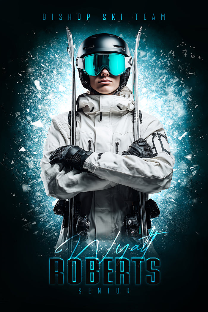 Designed to deliver a bold, high-impact look for senior banners, posters and composites this dynamic template features five different snow/ice effects that can be layered over the hockey goal to create a custom look.