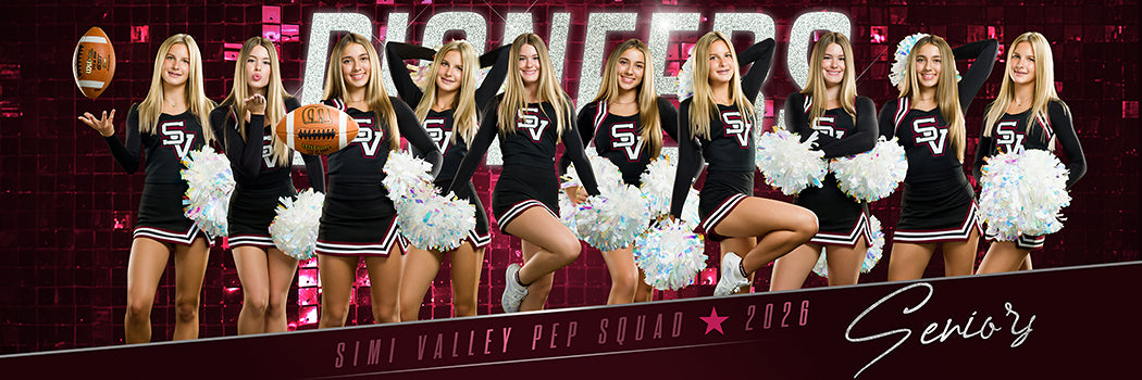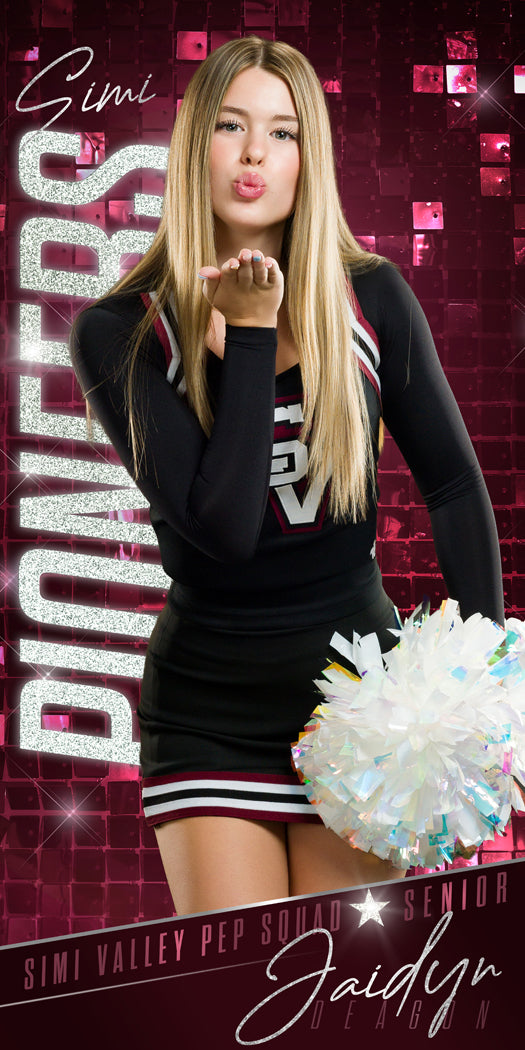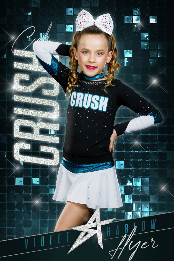 Perfect for cheer, dance, gymnastics this eye catching shimmery design works or any sport where the team wants to add a bit of sparkle!