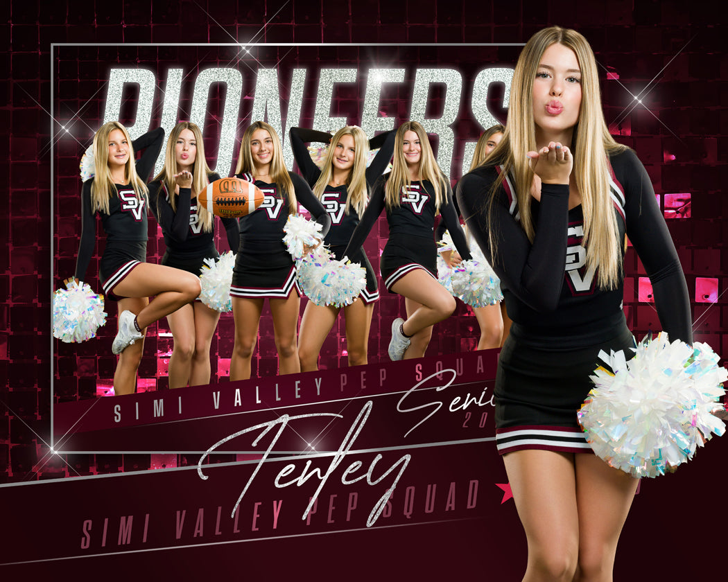 There are options for a glitter logo, vertical or horizontal team name, 11 different foreground layouts and 9 different shimmer walls in various sizes.