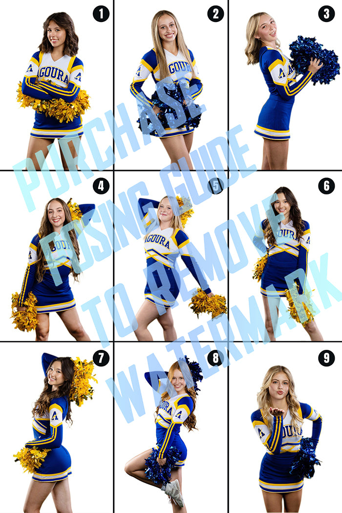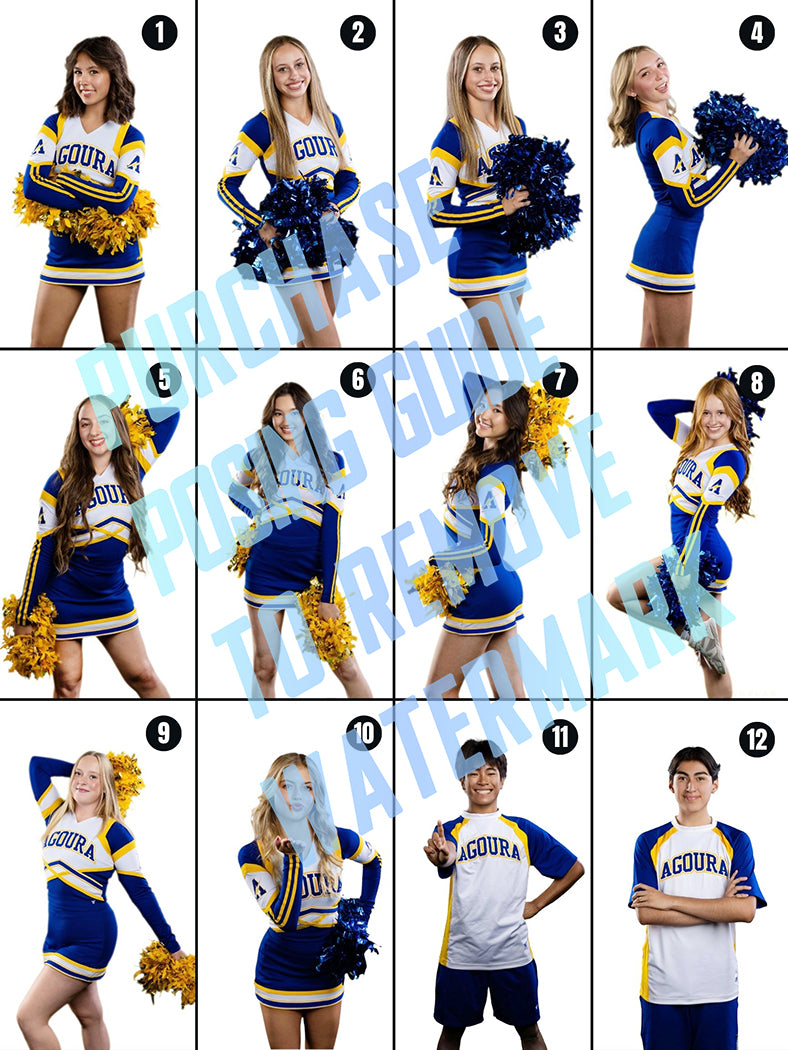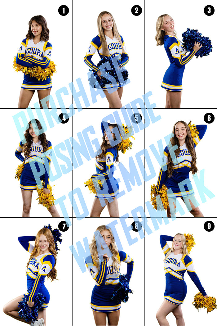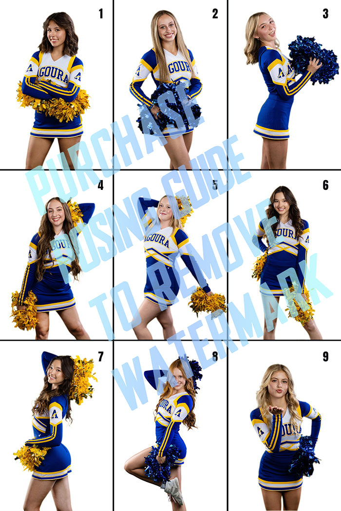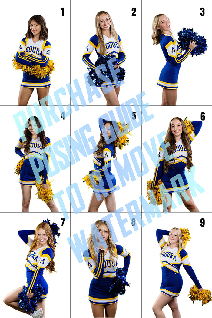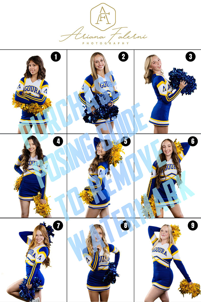 This sideline cheer digital posing guide has 9-12 unique poses in 3 popular print sizes as well as all the ingredients you need to make your OWN posing posters and retractable stands! These poses were selected specifically as they work well in senior banners – they are all poses where the arms and legs are not too far from the body and allow the athlete image to be large in the banner design.
